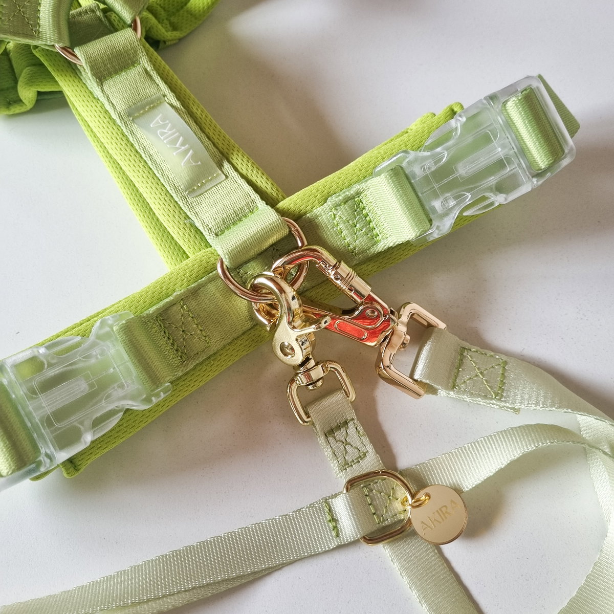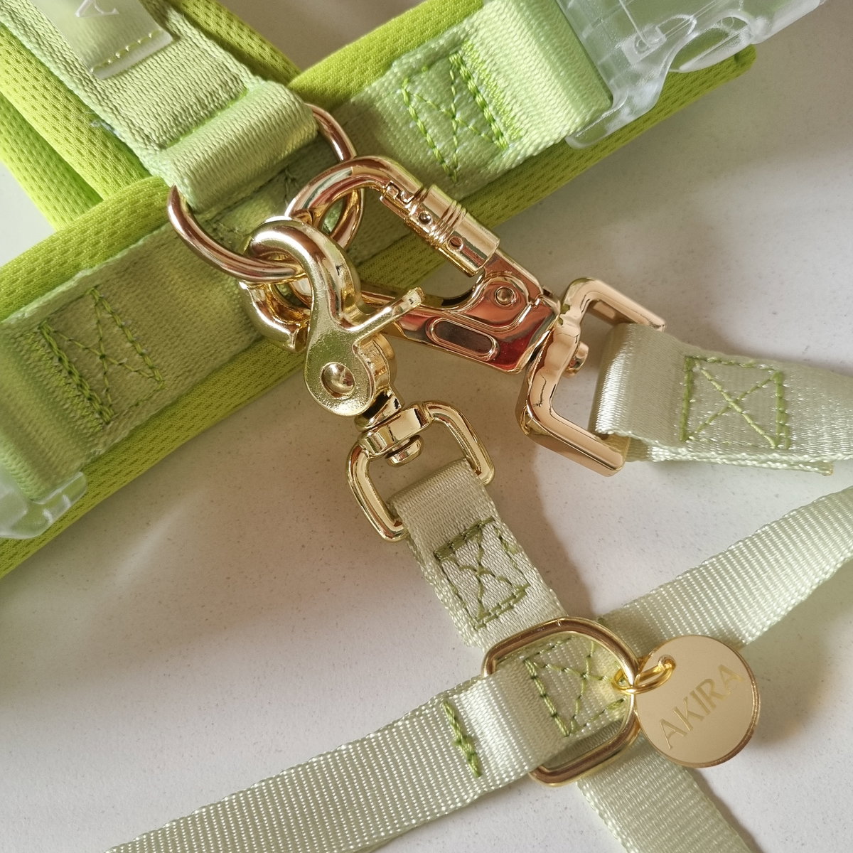 Fácil de usar, liviana pero resistente donde realmente importa - vas a querer usarla en cada paseo. Diseñada con herrajes en tono dorado, delicados pero duraderos, que no se oxidan ni manchan el pelaje de tu mascota.